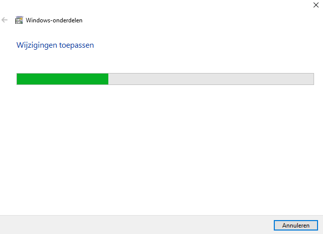 Windows zal nu beginnen met de installatie van HyperV: