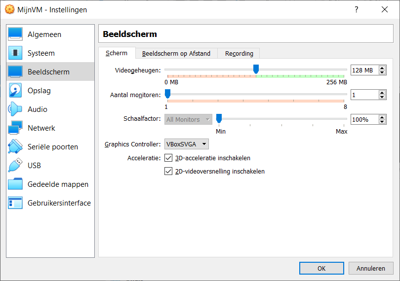 Om een vlottere werking te bekomen, kun je in het tabblad “Beeldscherm” best de 3D en 2D acceleratie aanzetten.